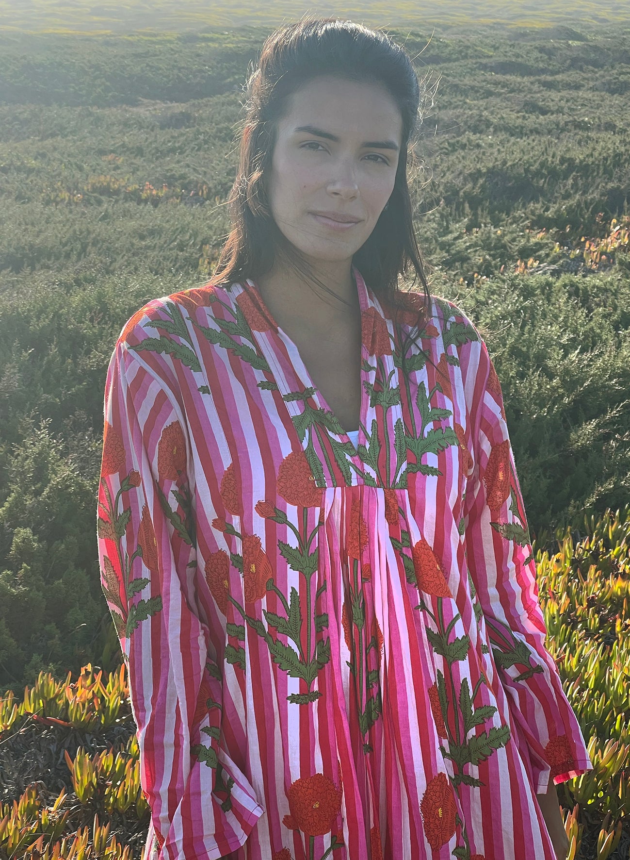 Sold outPINK FLOWERS BLOCK PRINTED SHOP BAG