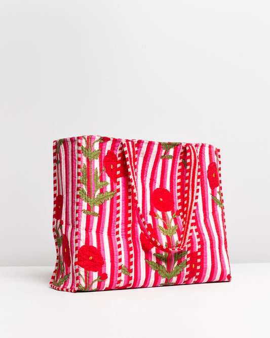 Sold outRED FLOWERS PLAITED TOTE BAG