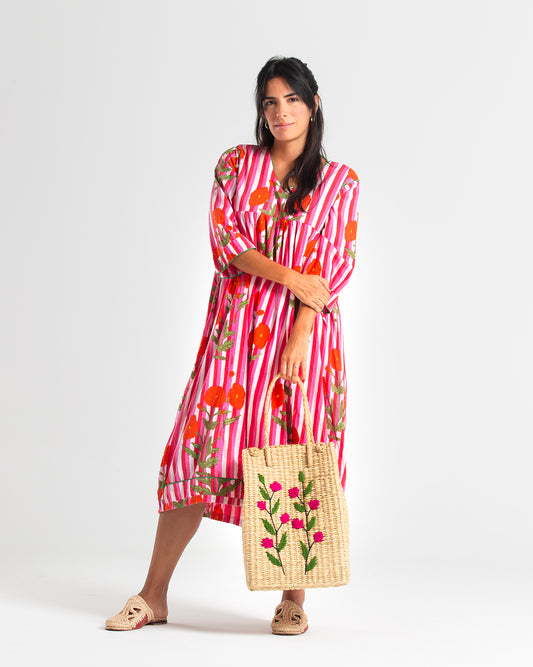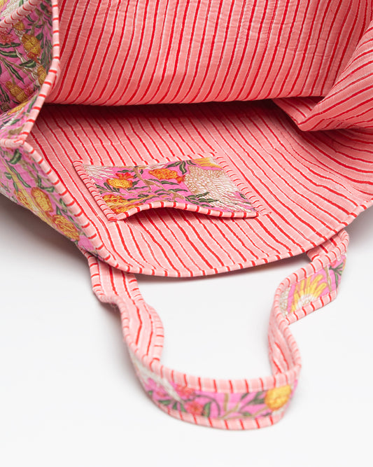 Sold outPINK FLOWERS BLOCK PRINTED SHOP BAG