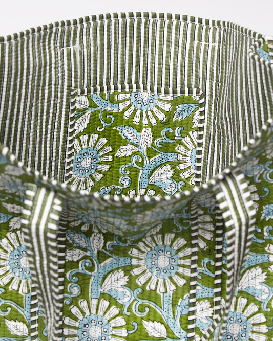 Sold outBLUE FLOWERS PRINTED GREEN BAG