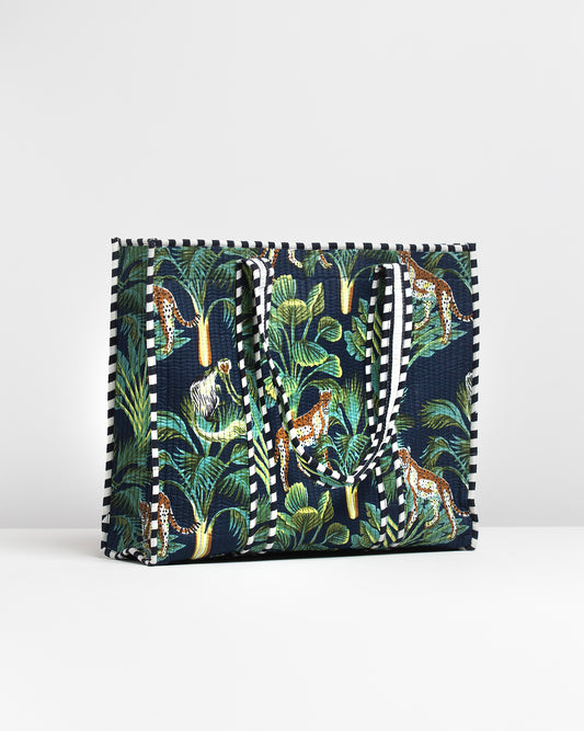 Sold outNAVY BLUE JUNGLE PRINTED PINK BAG