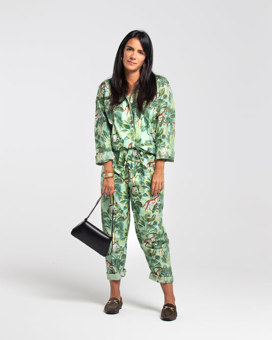 Sold outGREEN JUNGLE BLOCK PRINTED PAJAMA