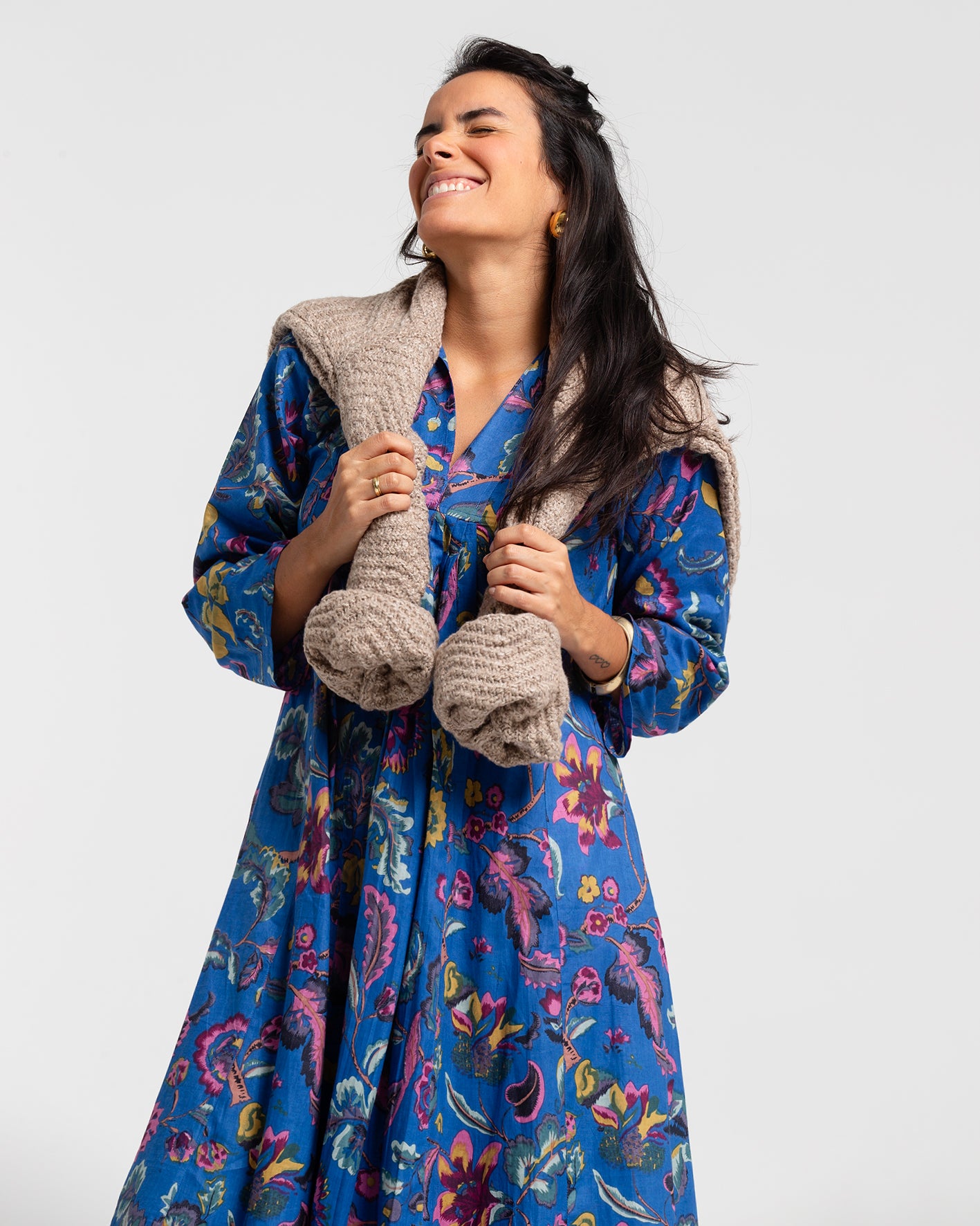 BOTANICAL BLUE BLOCK PRINTED DRESS