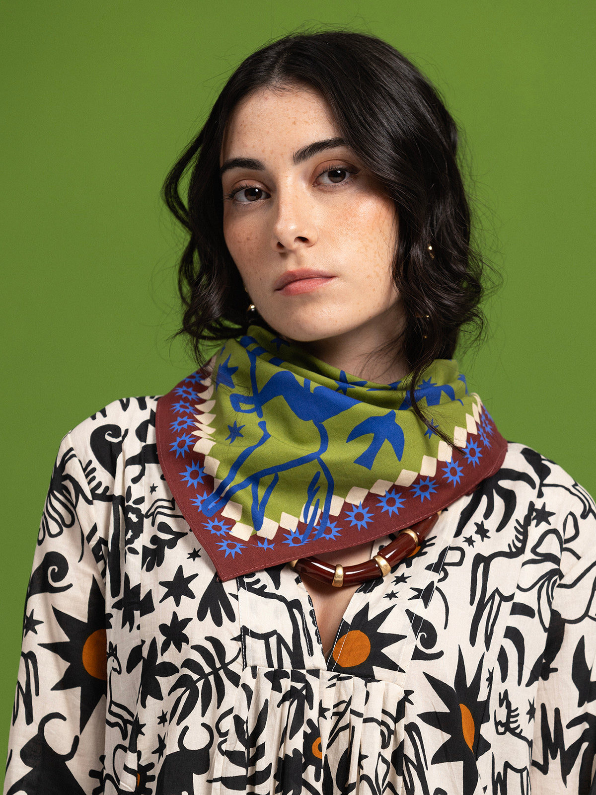 Cool, bold, and endlessly wearable — the Green Cowboy Cotton Scarf adds a playful, modern touch to your wardrobe. Crafted in soft cotton, its lightweight design flows easily, while the green base with tiny cowboy prints makes every look stand out. Wear it loose, knot it, or drape it over your shoulders for a stylish, effortless statement.