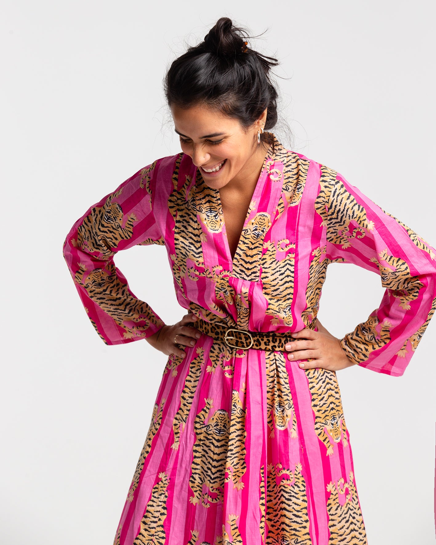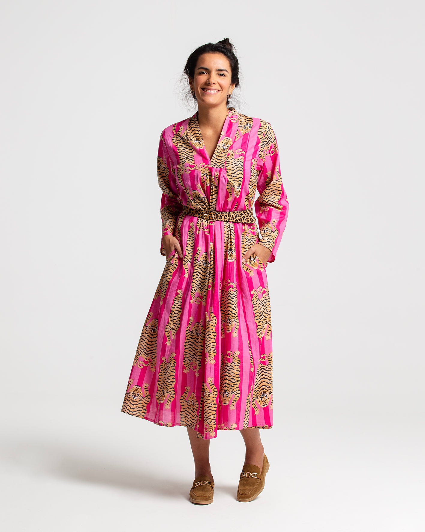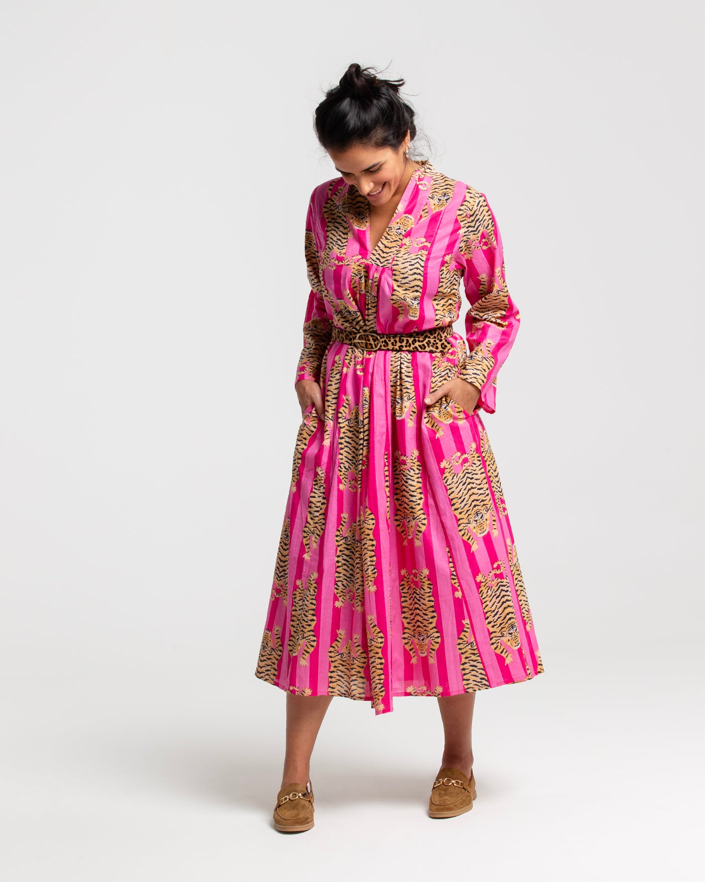 PINK TIGER BLOCK PRINTED DRESS
