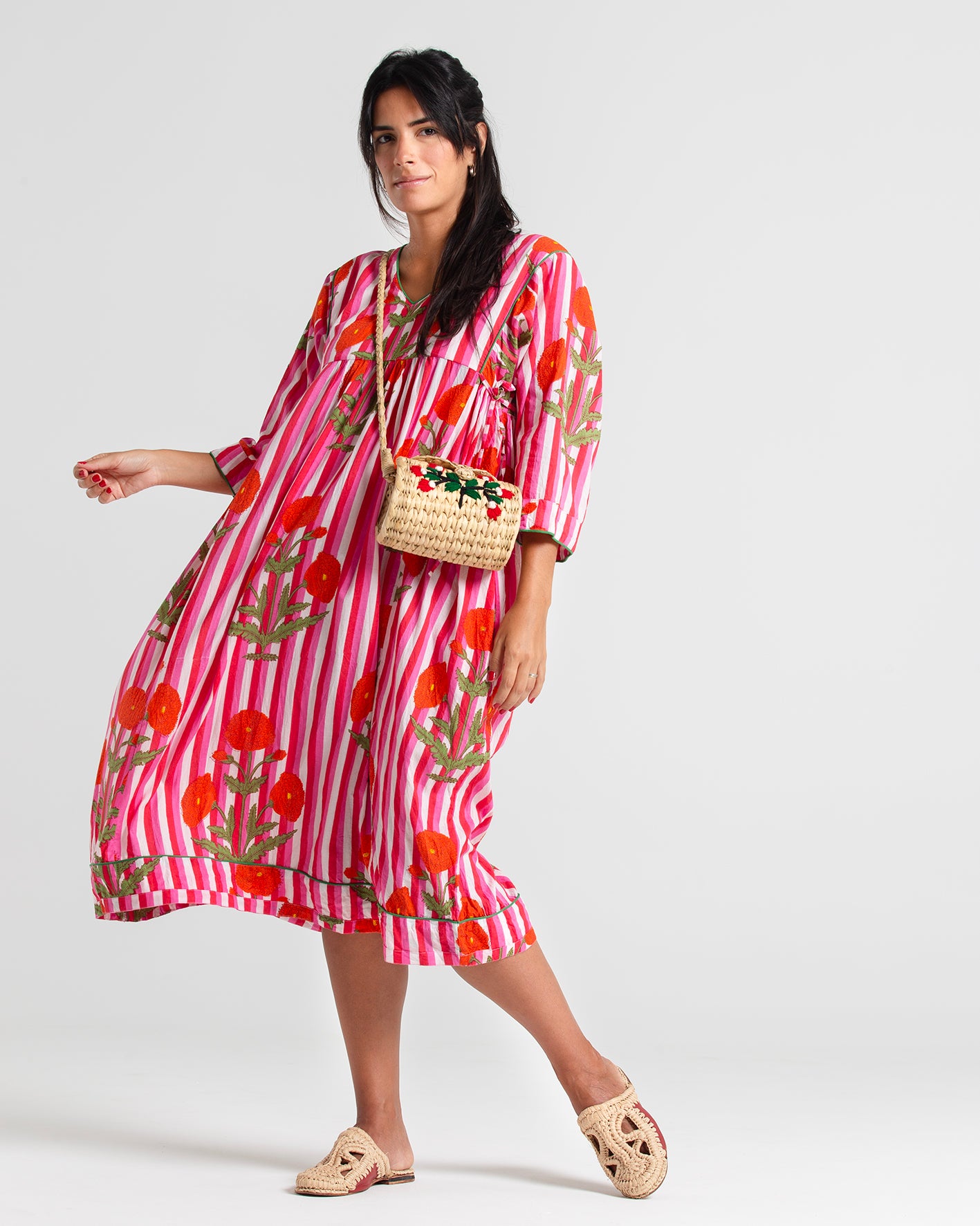 RED FLOWERS BLOCK PRINTED DRESS