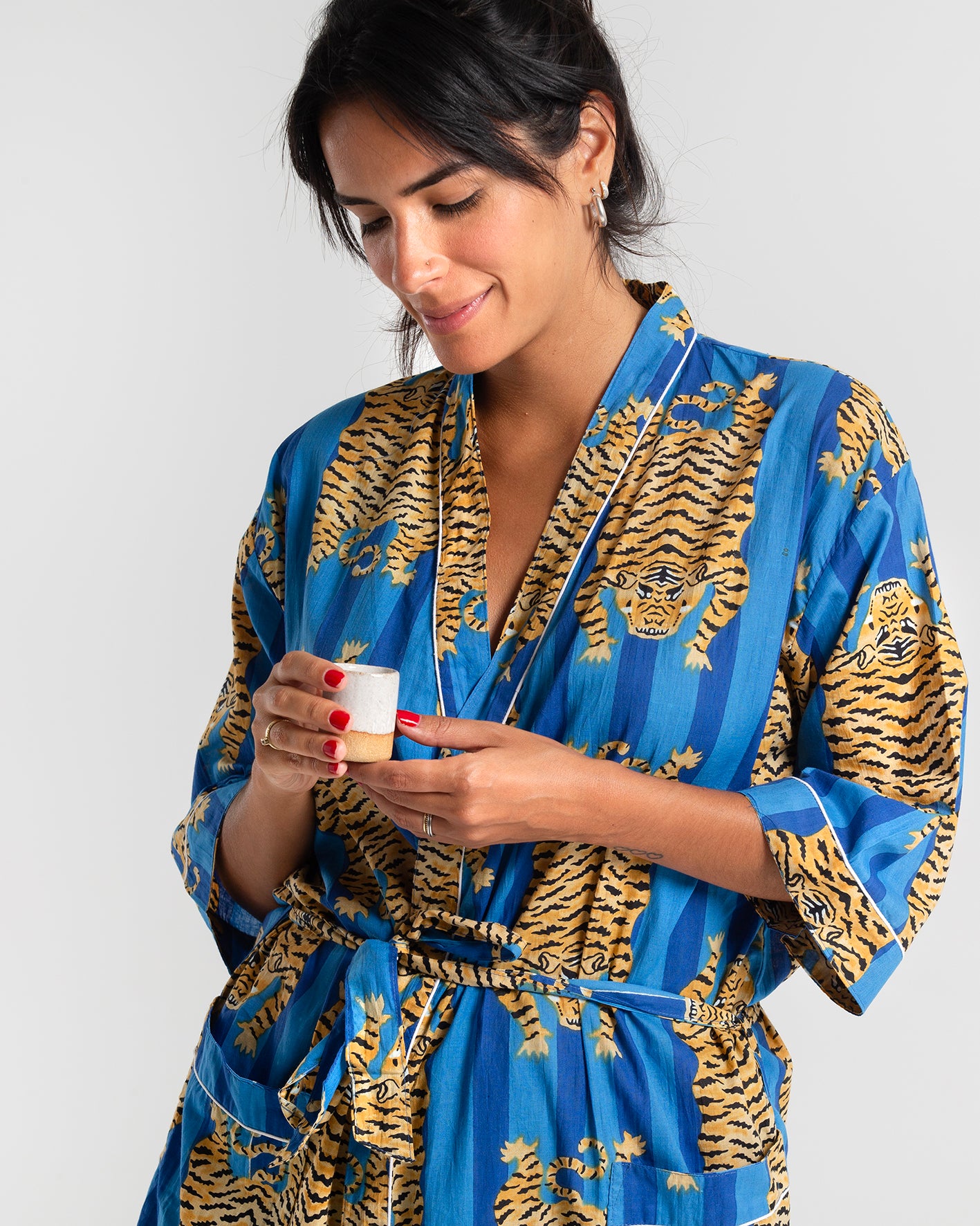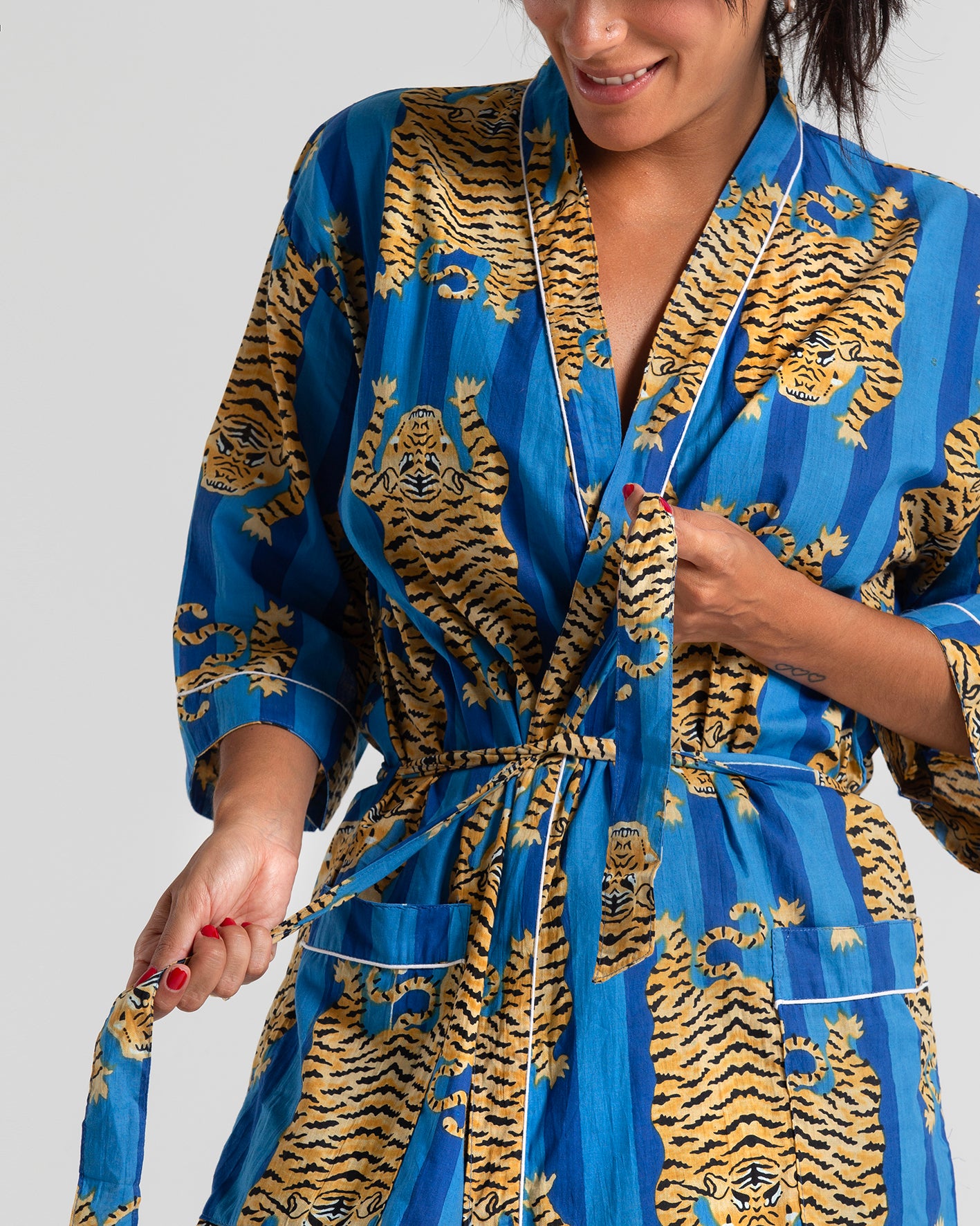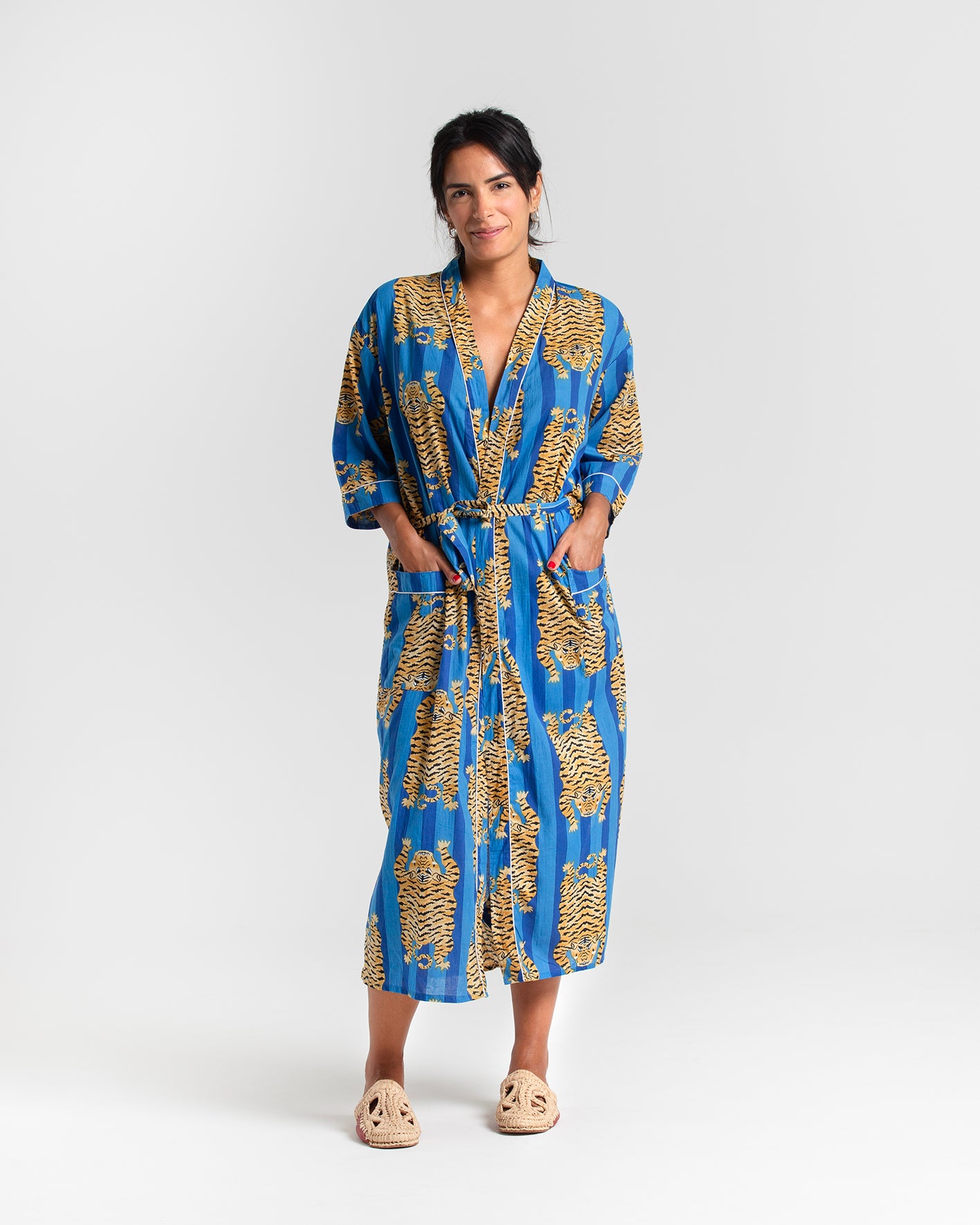 Elevate your loungewear with our Hand Block Printed Cotton Robe, designed for women who appreciate both style and natural comfort. Crafted from premium cotton, it envelops you in pure softness and breathability. The exquisite hand block print adds an artistic touch, making this robe a stylish statement. Whether you're starting or ending your day, it provides the perfect blend of style and comfort. Slip into this robe and experience the ultimate relaxation, all while looking chic. Elevate your everyday moments with the timeless appeal of our Hand Block Printed Cotton Robe, where style meets natural serenity.