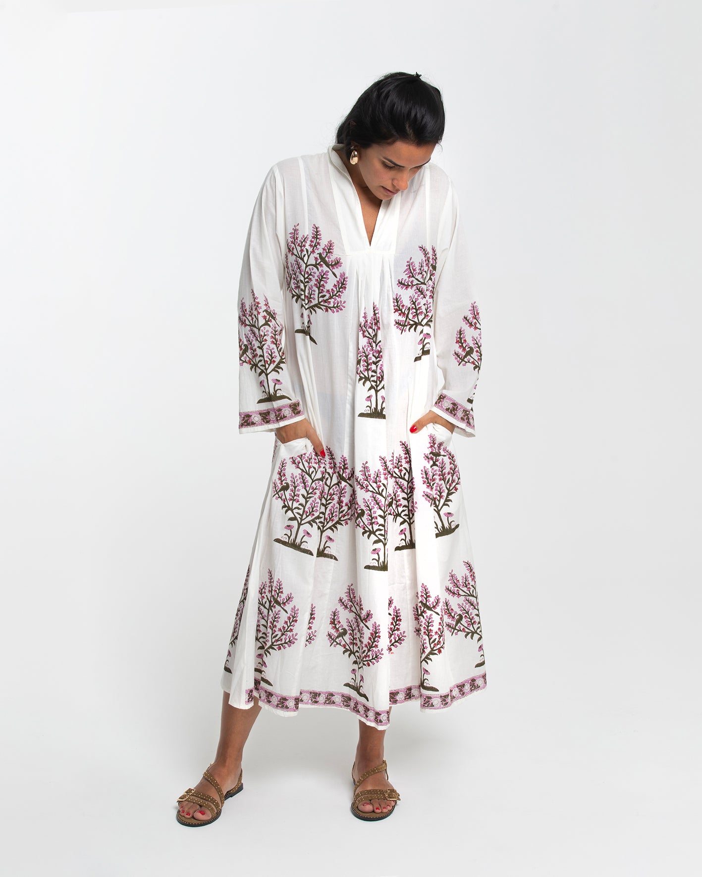 WHITE FLOWERFUL BIRDS MIDI DRESS