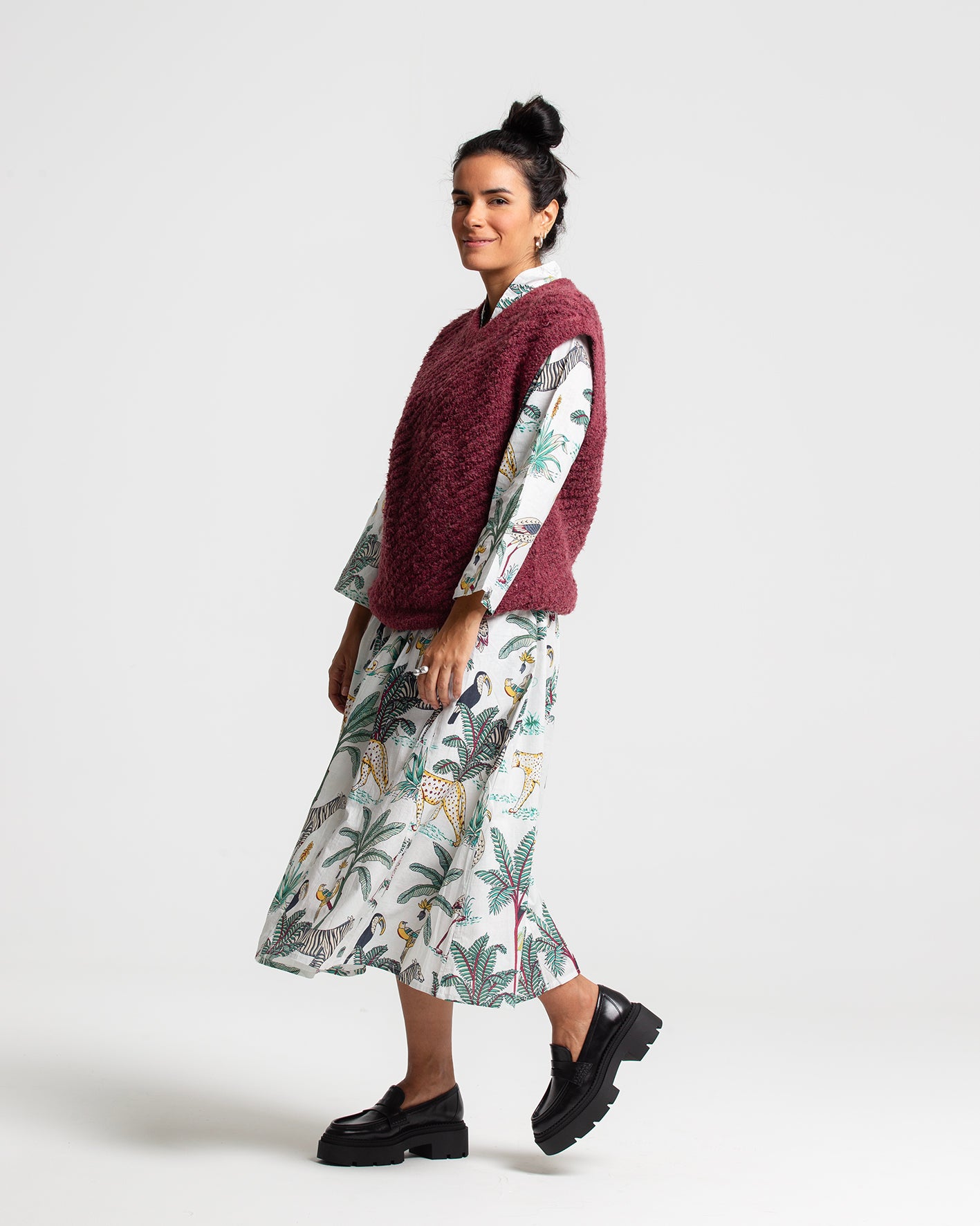 WHITE JUNGLE BLOCK PRINTED DRESS