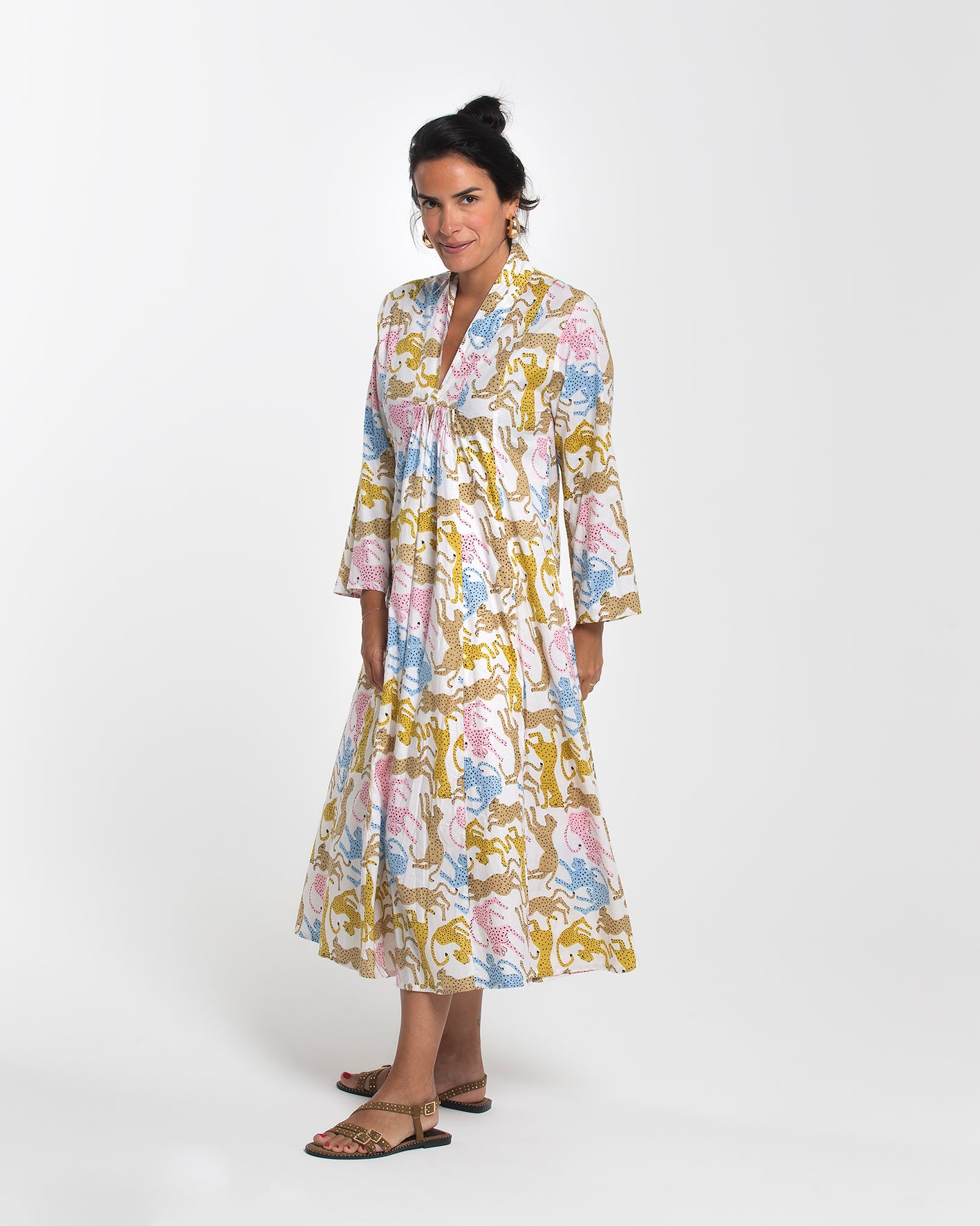 WHITE MIDI DRESS COLORFUL LEOPARDS