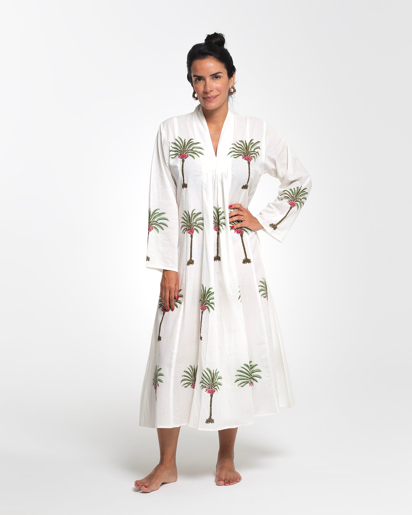 WHITE TROPICAL DESTINATION MIDI DRESS
