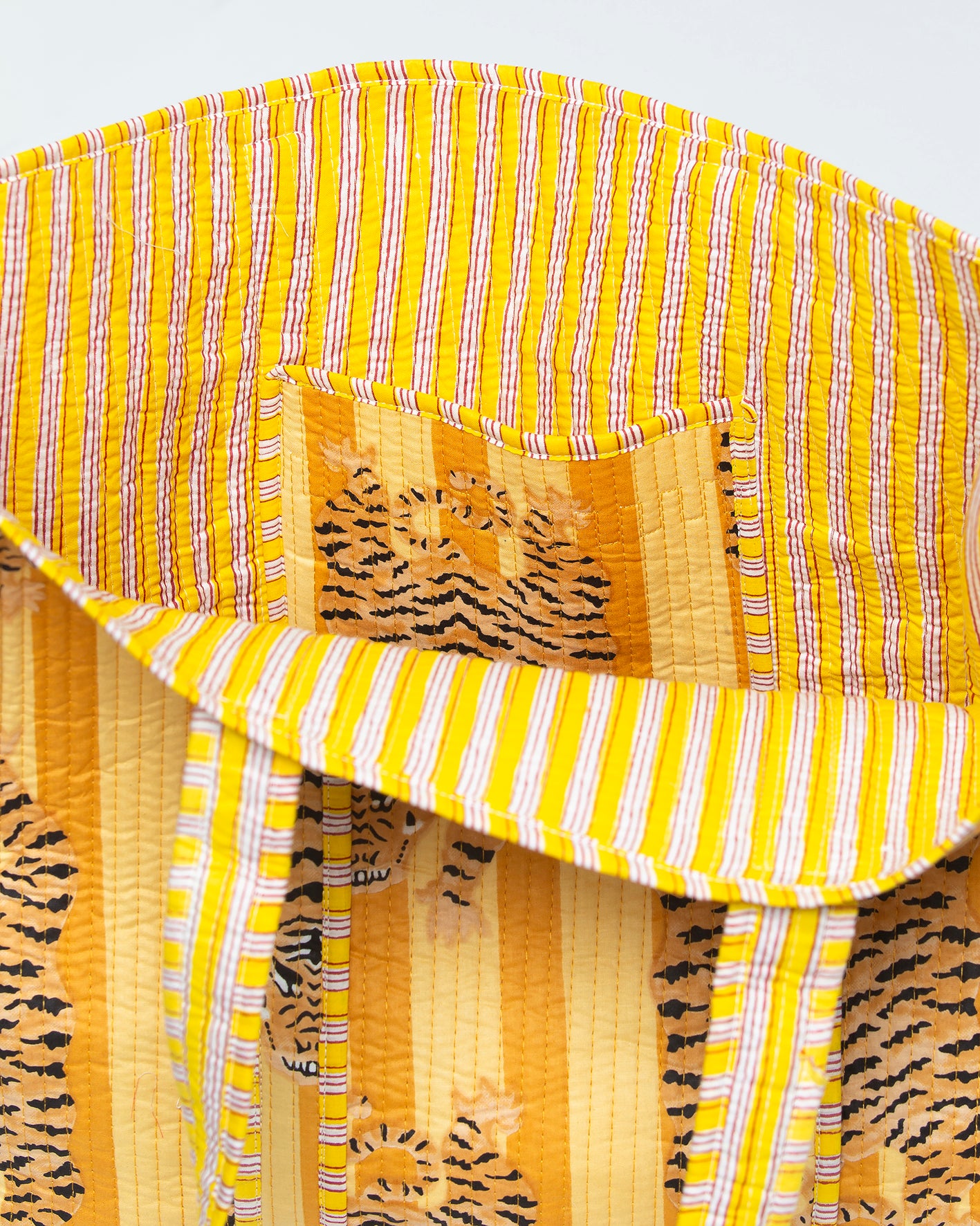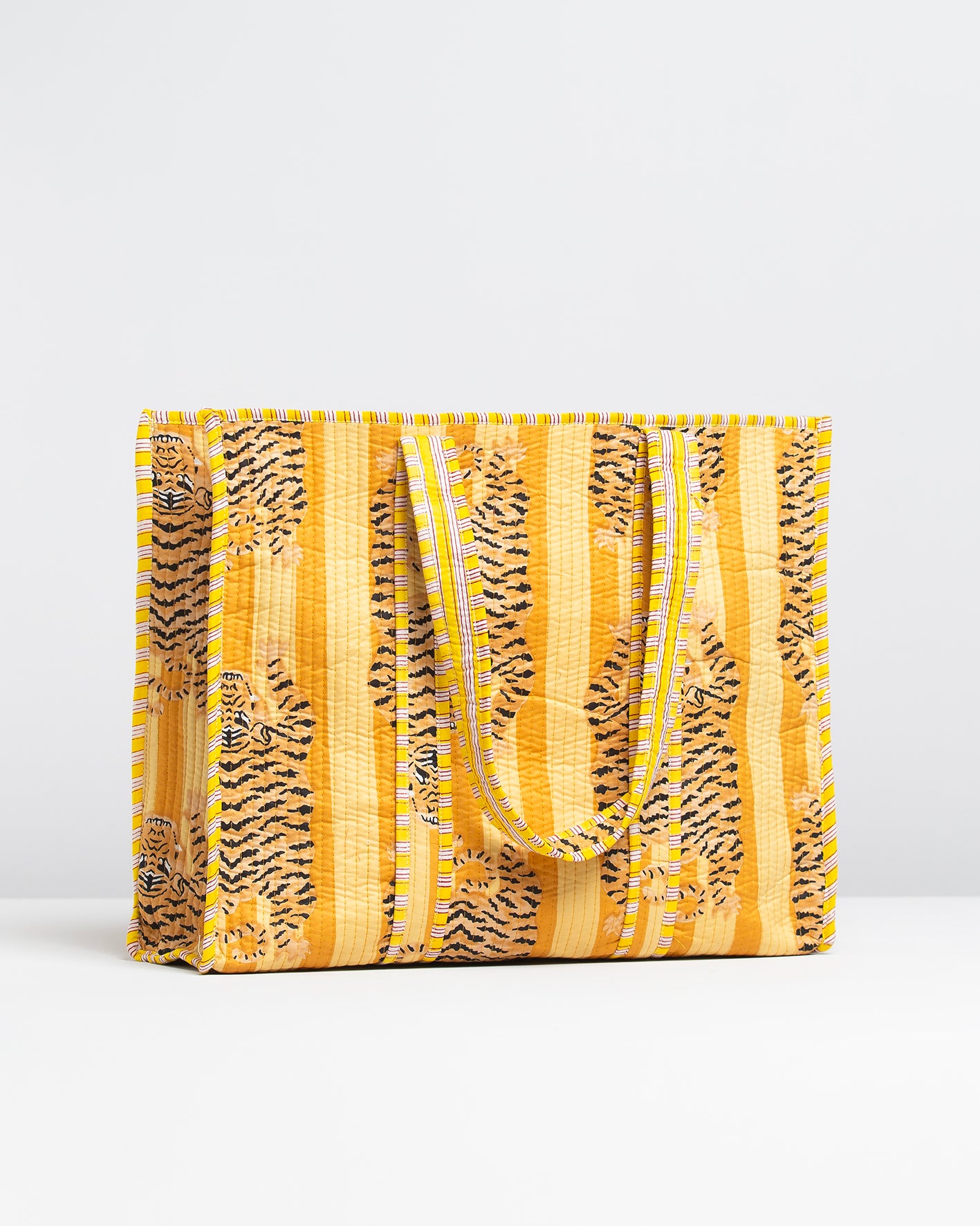 YELLOW TIGER BLOCK PRINTED SHOP BAG